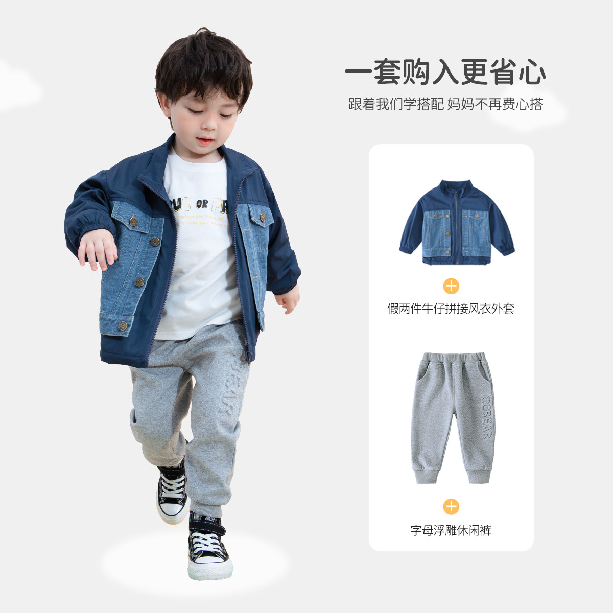 Детская осенняя куртка, комплект, детский джинсовый плащ для мальчиков для отдыха, в западном стиле