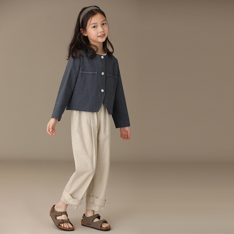 Осенняя ретро короткая куртка с круглым воротником, детская одежда, семейный стиль, французский стиль
