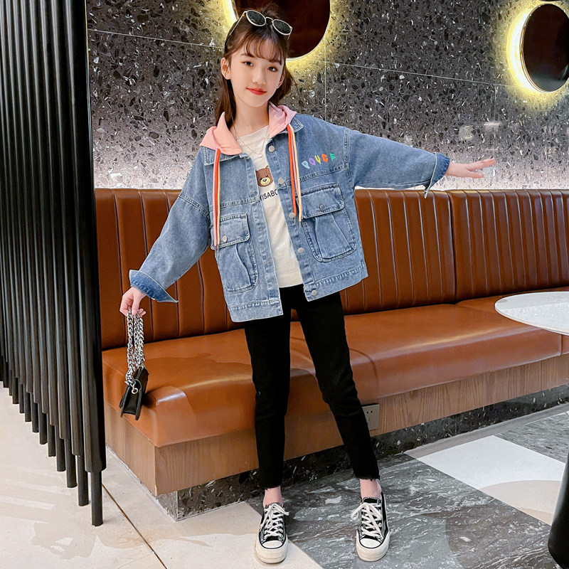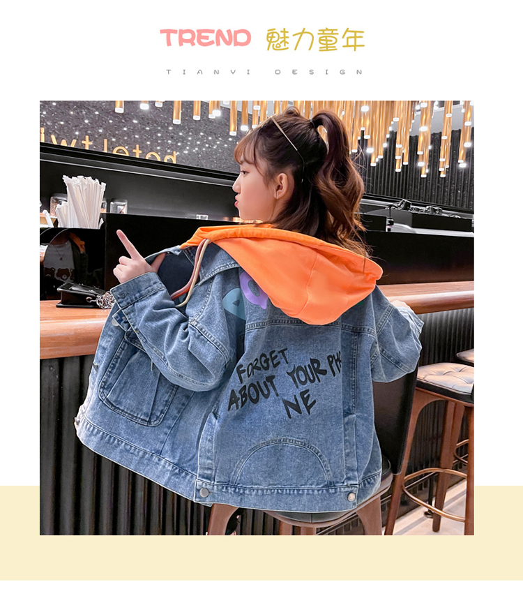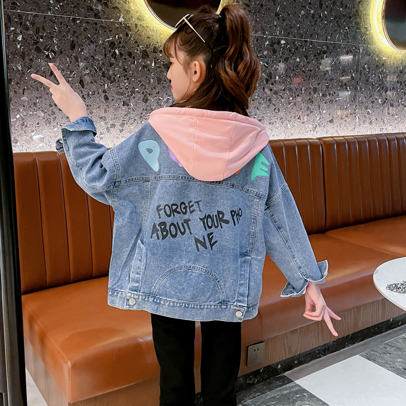 Джинсовая осенняя куртка с капюшоном, детская форма, в западном стиле, коллекция 2023, популярно в интернете