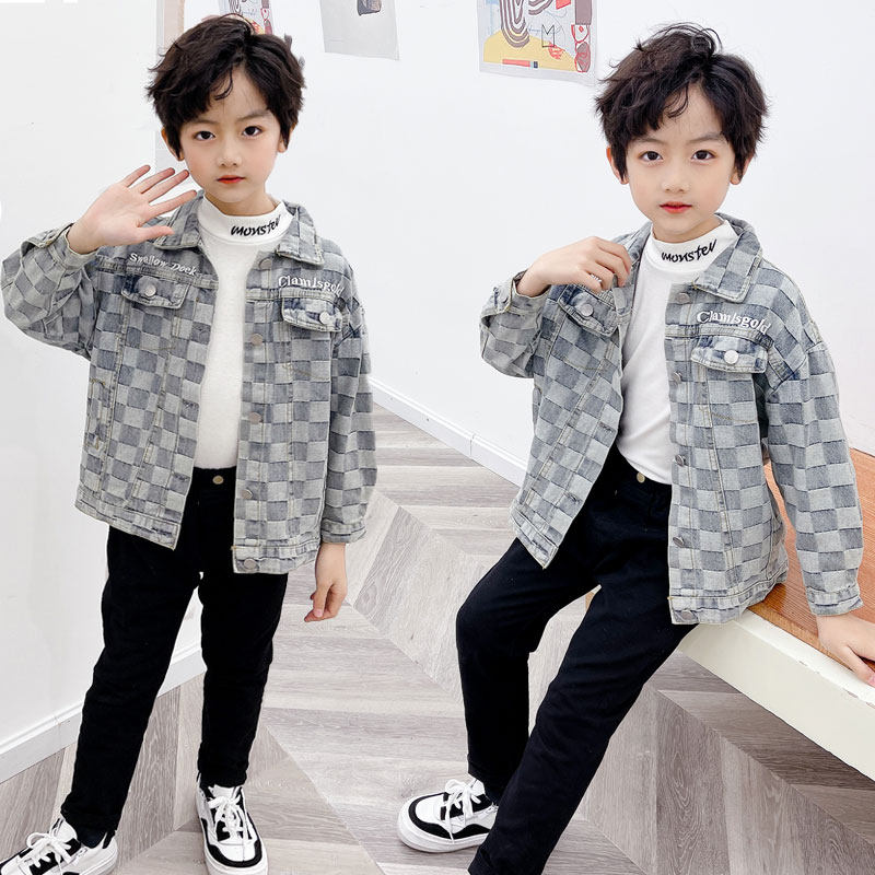 Детская джинсовая осенняя синяя весенняя куртка для мальчиков, свободный крой