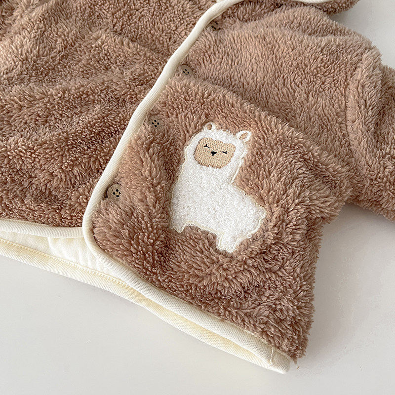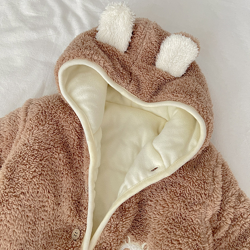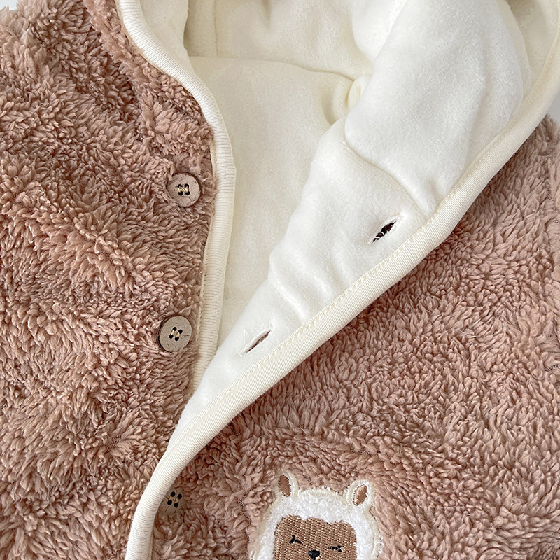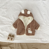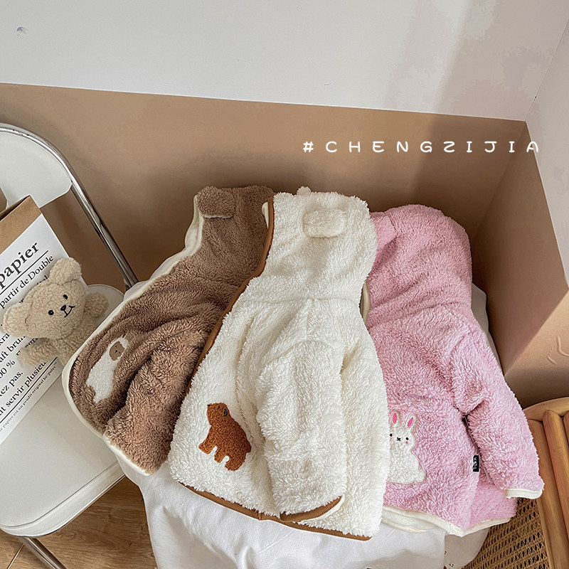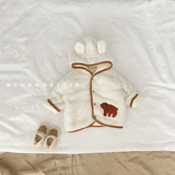 Брендовый детский пуховик подходит для мужчин и женщин, толстовка с капюшоном для девочек для новорожденных, мультяшный удерживающий тепло комбинезон для выхода на улицу, в корейском стиле