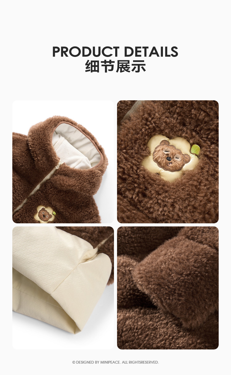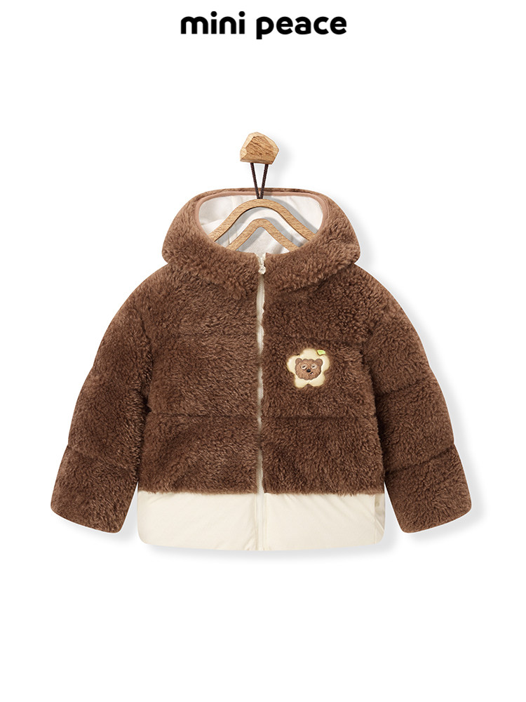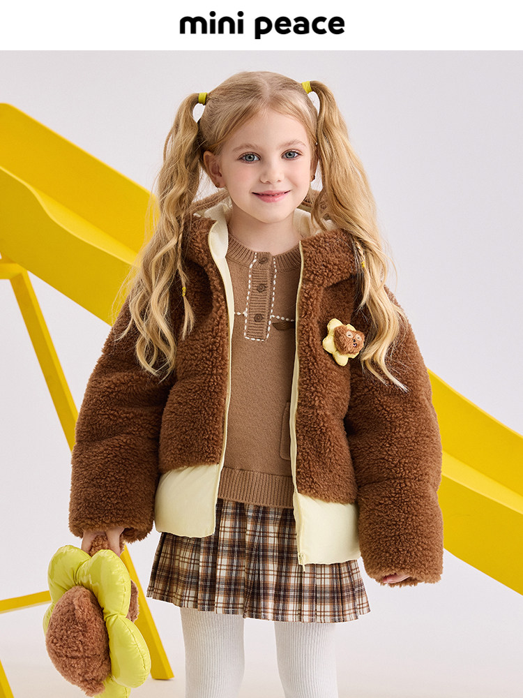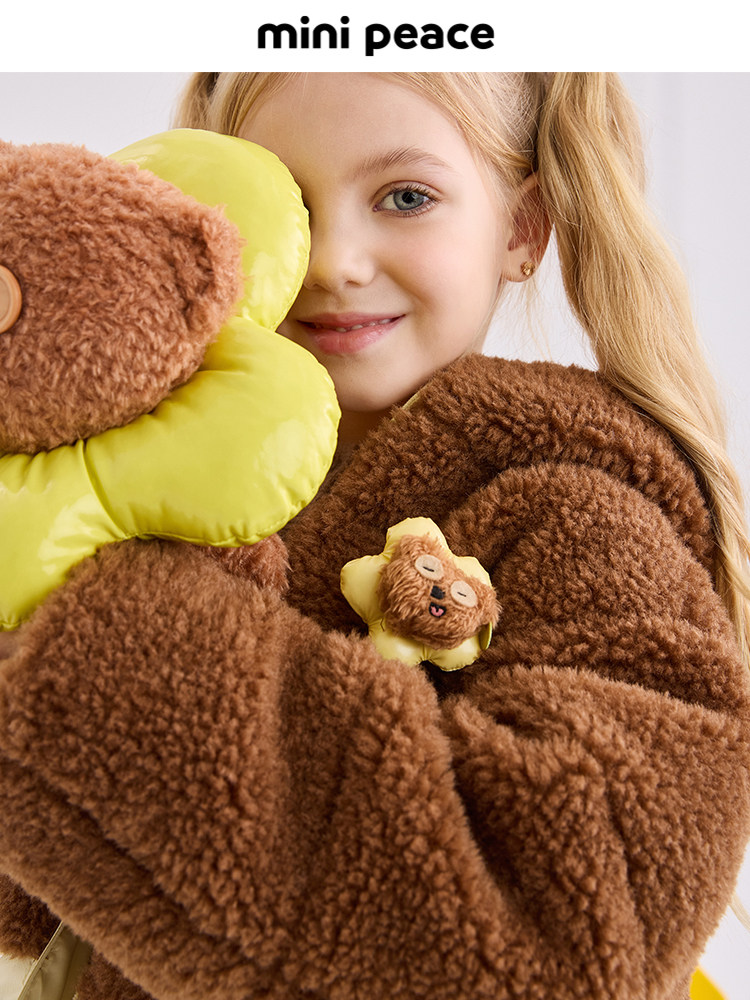 [В том же стиле у стойки] PEACEBIRD | Совместная брендовая куртка из шерпы с имитацией шерпы Minions, детская теплая куртка, зимняя