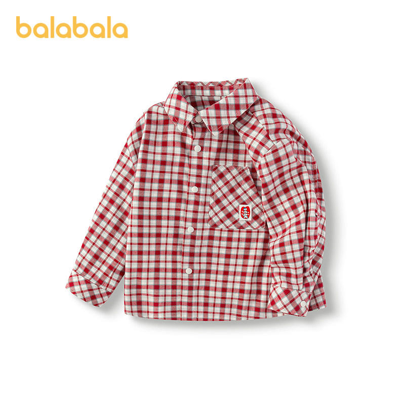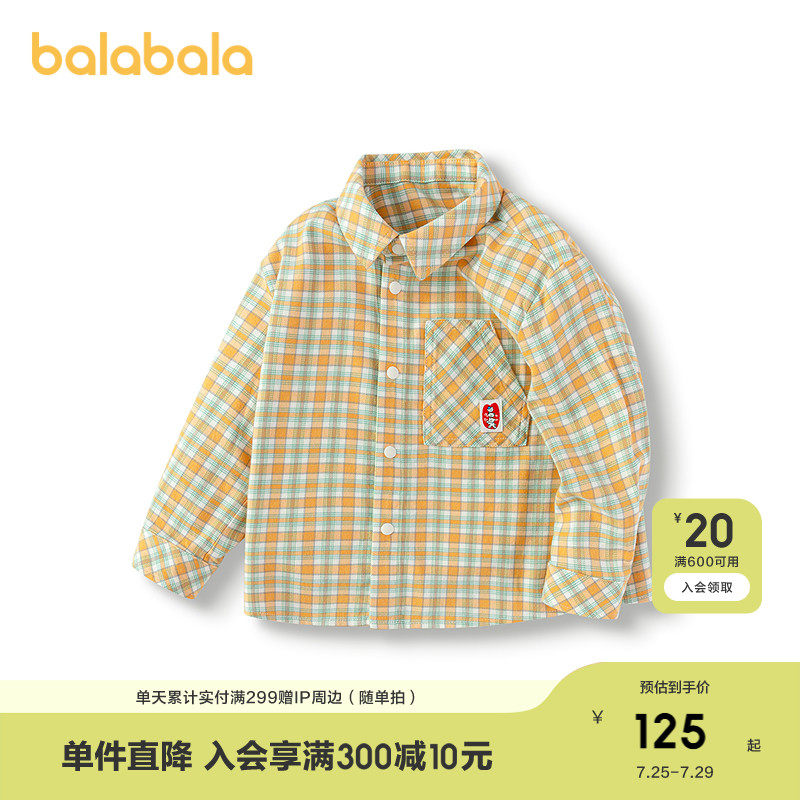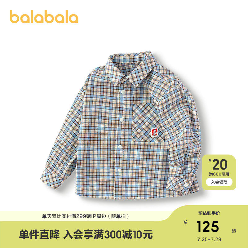 [Тот же стиль в торговом центре] Balabala детская одежда рубашка для малышей куртка клетчатый топ для мальчиков осенняя одежда 2025 новый стиль