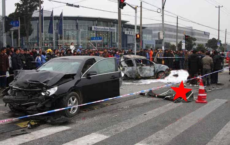 По словам свидетелей, «после удара, задняя часть седана QQ была полностью деформирована, и топливный бак мог быть сломлен, и он сразу же начал гореть. Огонь был очень жестоким, поэтому они вскочили прямо. В то время в машине сидели два человека, отчаянно открывая дверь своими руками, но они не могли открыть ее. Когда они хотели разорвать стеклян