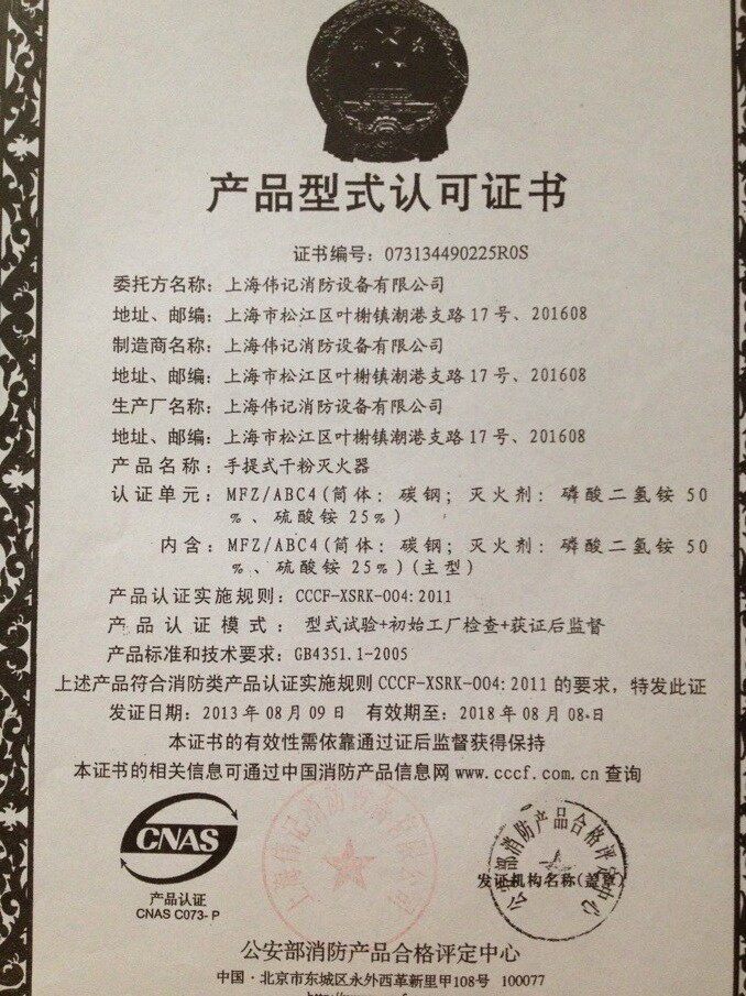 Огнетушитель Shanghai Card Card (Weiji) Практическая 3 кг сухого порошка огнетушитель Объем большой скидка Shanghai Бесплатная доставка может вернуться