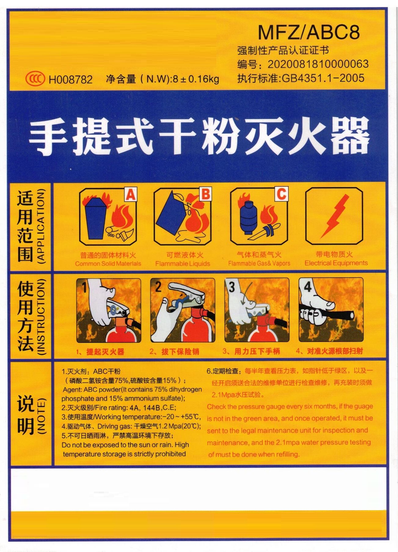 Магазин заводов с заводом за фабрики завода для сухого порошка для заводов для 4 кг за фабрики для 1/2/3/5/8/8 кг пожарной борьбы