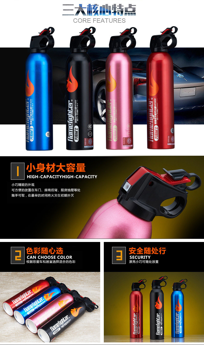 Flame Warrior Car Огнетушитель автомобиль. Ежегодный осмотр домашних домохозяйств с малым автомобилем -высушенным пороховым портативным пожарным оборудованием