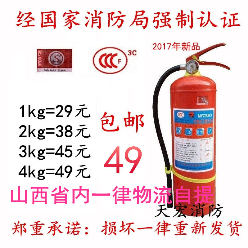 Огнетушитель огнетушителя 4 кг сухой порошок портативный ABC4 кг автомобиль Home Home Hotel Warehouse Plant 12358 кг бесплатная доставка