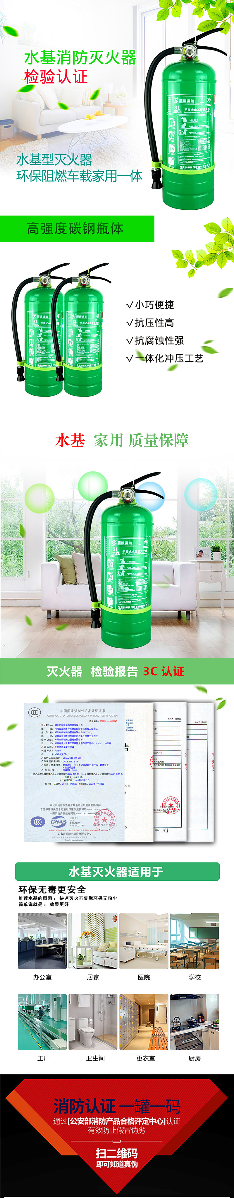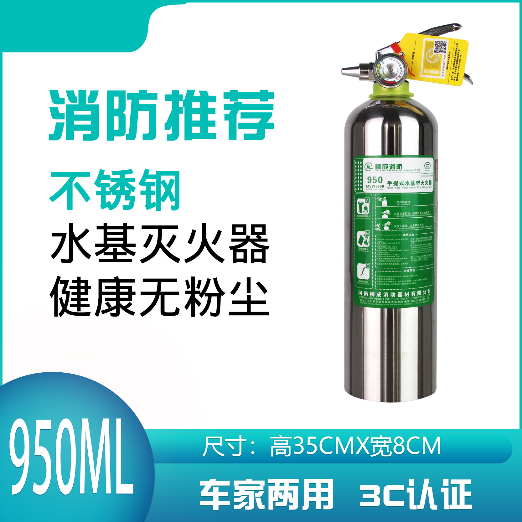 Огнетушитель на основе воды 950ML2L3L Зеленый экологический завет.