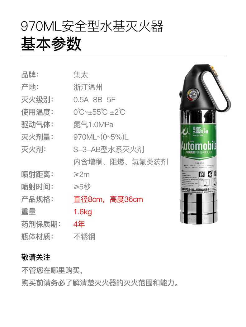 集太 Автомобильная вода на базе из нержавеющей стали пожарной охраны огнетушитель частной автомобиль Пользовательский сертификация Пожарная сертификация годовой проверка портативная