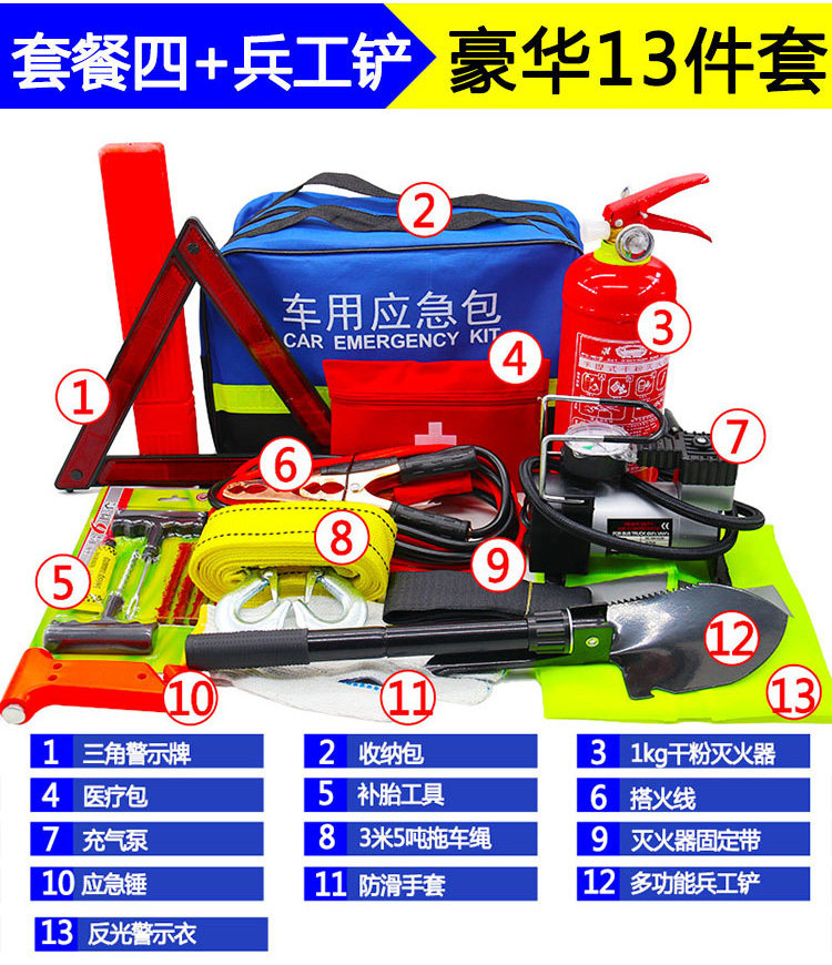 Набор огнетушителей транспортного средства, автомобиль аварийного пакета для многопрофессионального инструмента для спасения аварийного пакета.