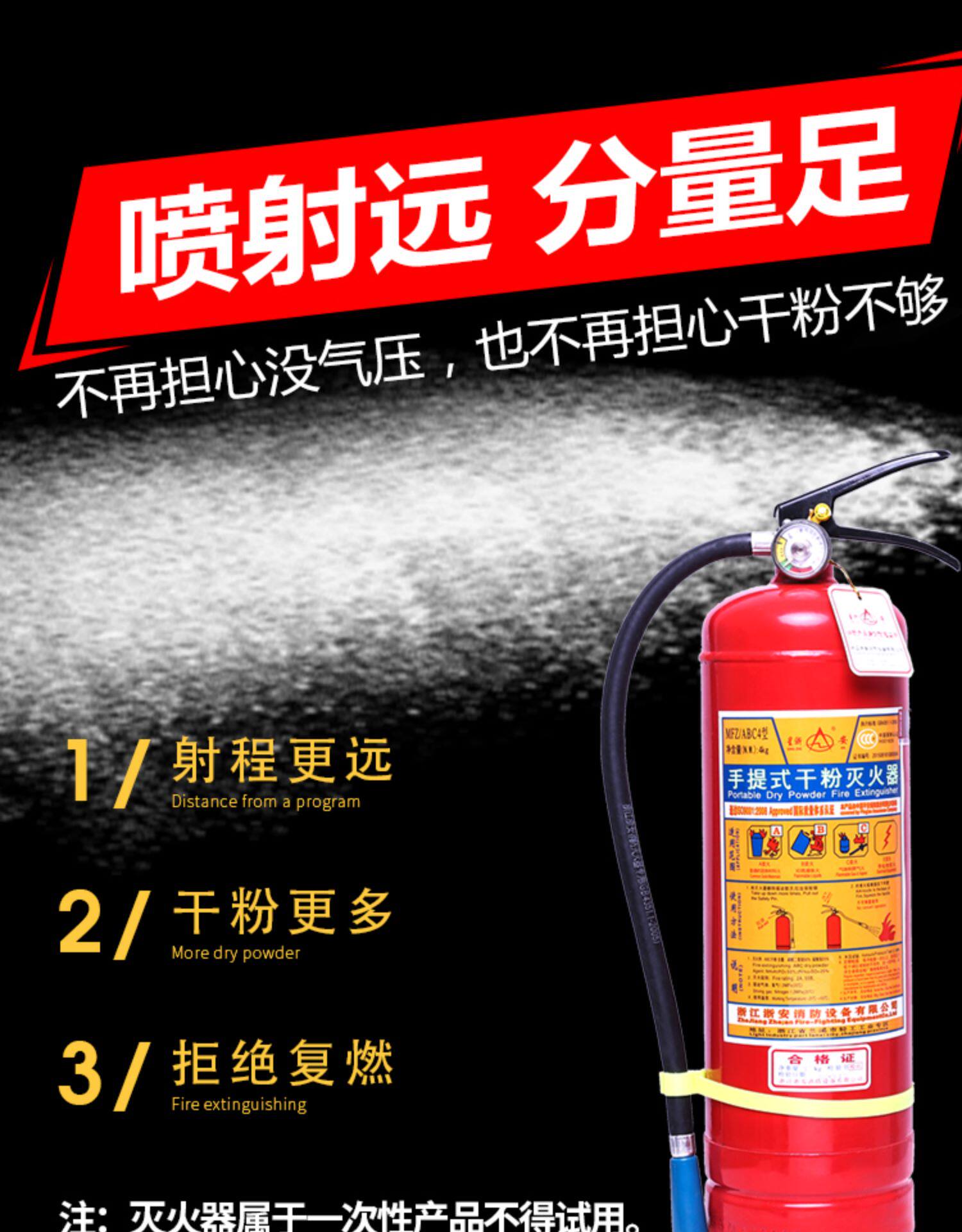Zhejiang Fire Fire Octentingwiseer 4 кг пользователя магазина с использованием ручного порошкового огнетушителя 1KG2KG3KG5K Огненное оборудование