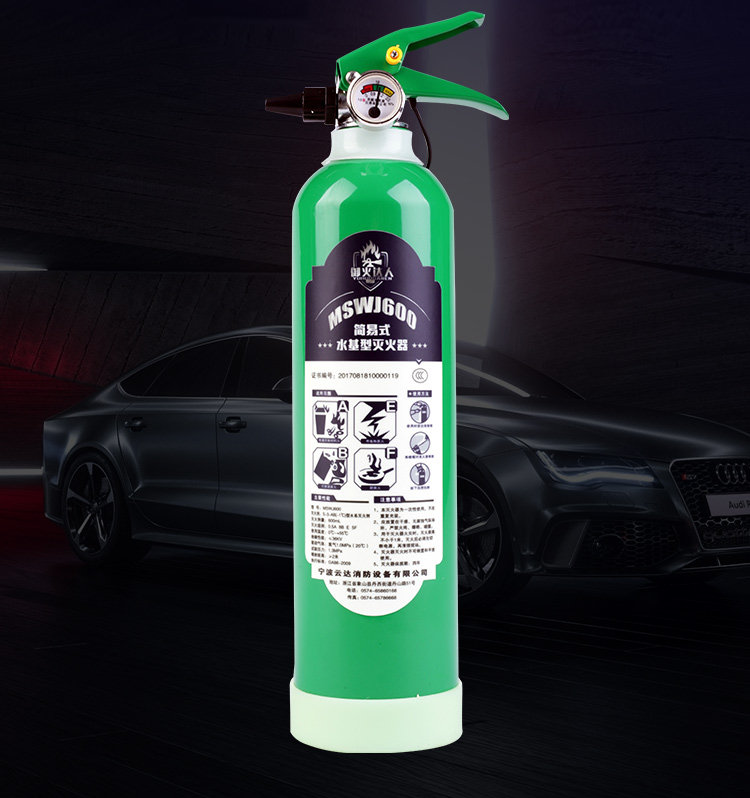 Автомобильный огнетушитель на основе воды на домохозяйственном автомобиле.
