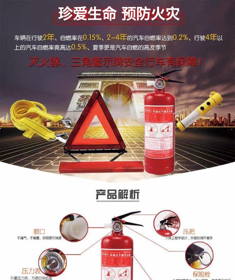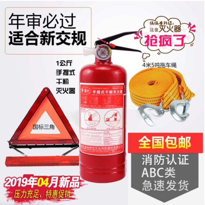 Огнетушитель автомобиля Частный автомобиль 1 кг2 кг проверьте карту автомобильного треугольника и положите ее в машину в машине и используйте веревку для прицепа, чтобы поместить ее