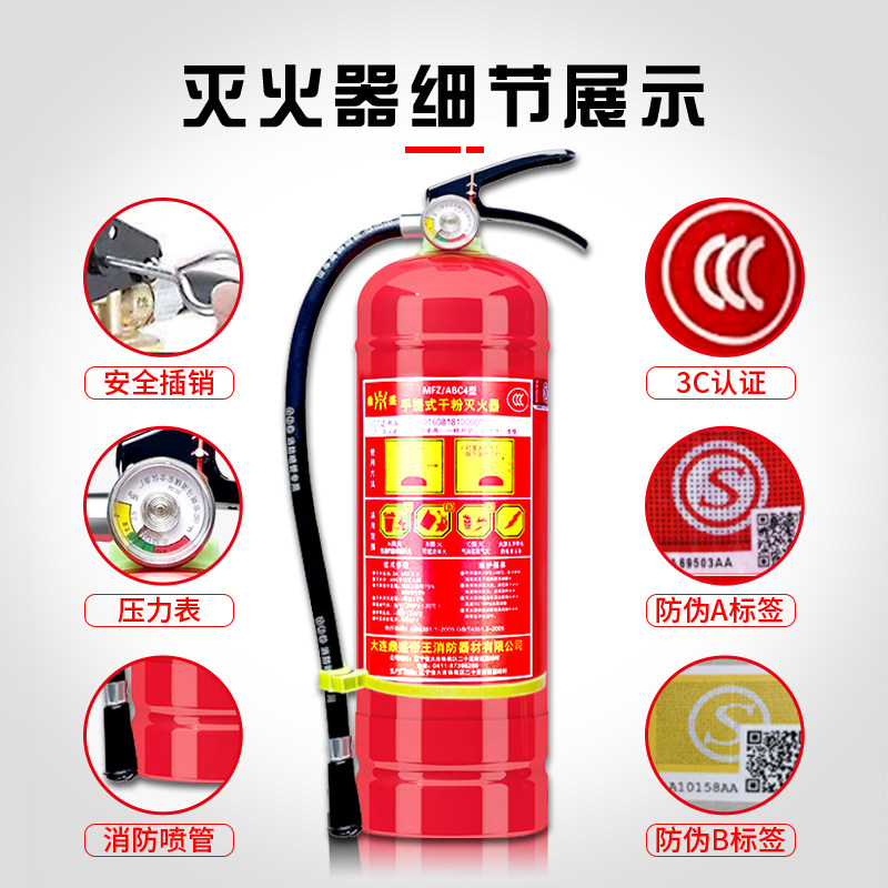Магазин огнетушителя с 4 кг ручки для сухого порошка дома 4 кг 1 кг2/3/5/8 кг национального стандарта 3C