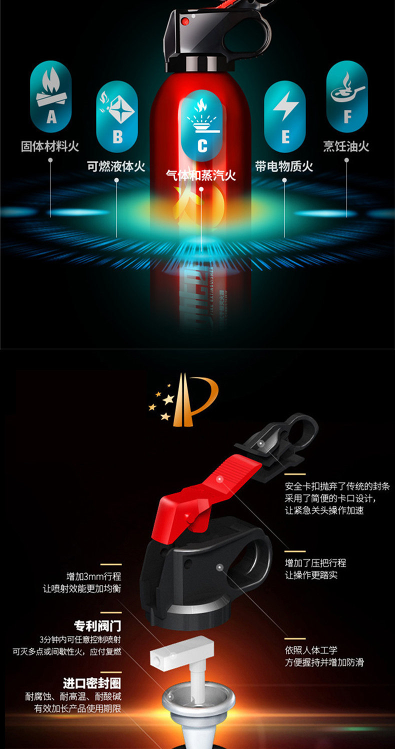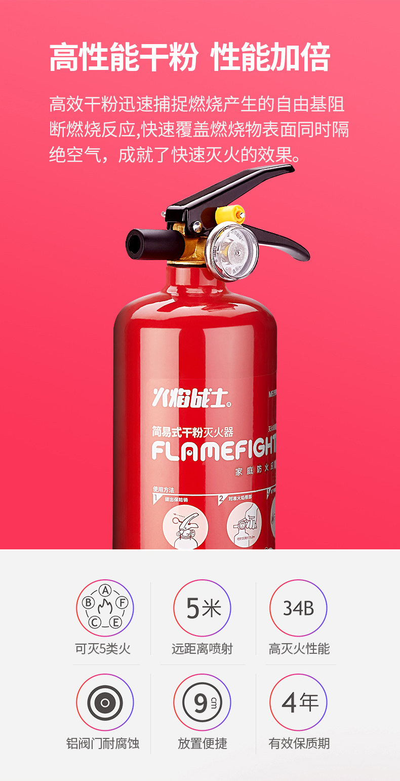 Flame Warrior Автомобильный огнетушитель Магазин транспортного средства Сухой порошок Частный автомобиль Бытовая ежегодная проверка Заводское пожарное оборудование