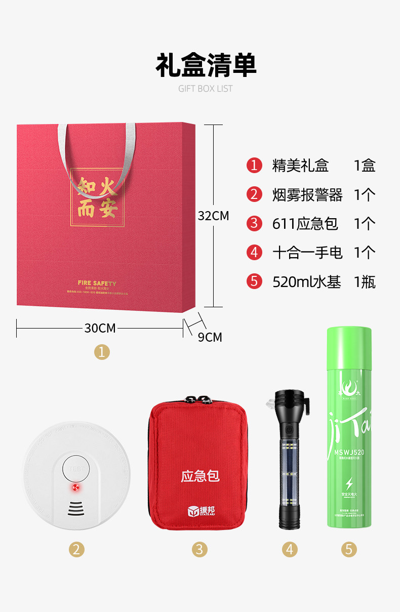 Пожарная подарочная коробка для пожарной безопасности Домохозяйственная дымовая сигнализация самостоятельная спасение.