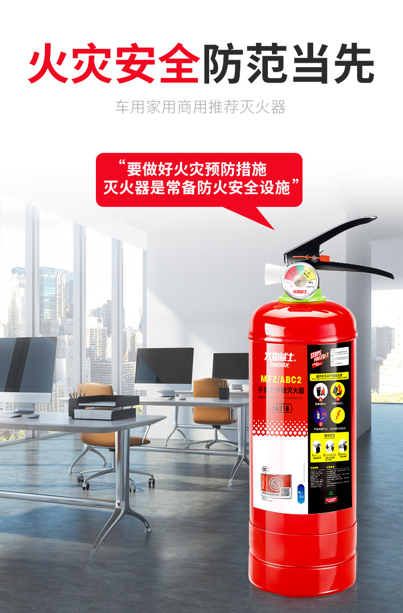 Автомобильный огнетушитель Flame Warrior, сухой порошок, бытовой ежегодный осмотр, магазин, 2 кг, 3 кг, пожарное оборудование для частного автомобиля
