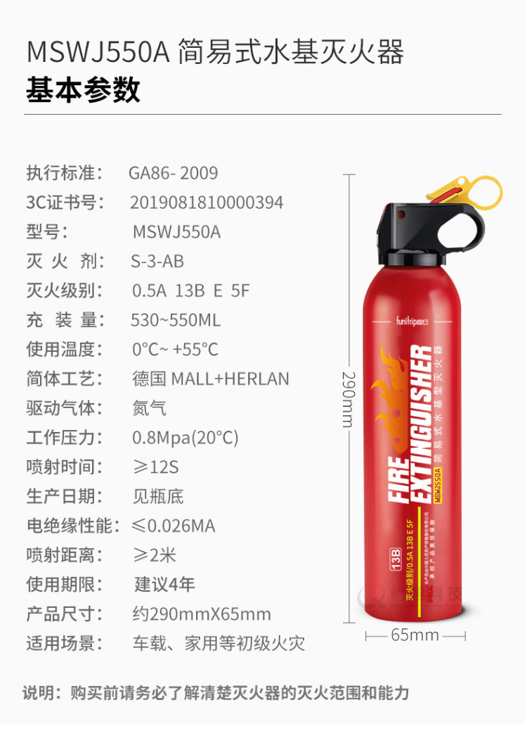 趣行 Огнетушитель автомобилей на основе модели на основе воды Частный домашний автомобиль для портативных стран 3C Пожарный сертификационный оборудование
