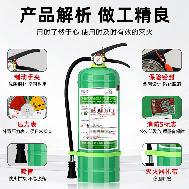 水基灭火器正品 3 升家用车用店商铺用 2/9l6 水剂泡沫手提式环保工厂