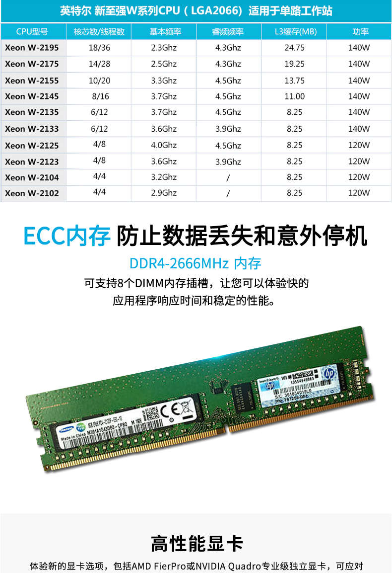 - W-2125 4 Ядра 4.0G 16G память 256G Твердое состояние+ 2T жесткий диск P1000 4G Независимый дисплей