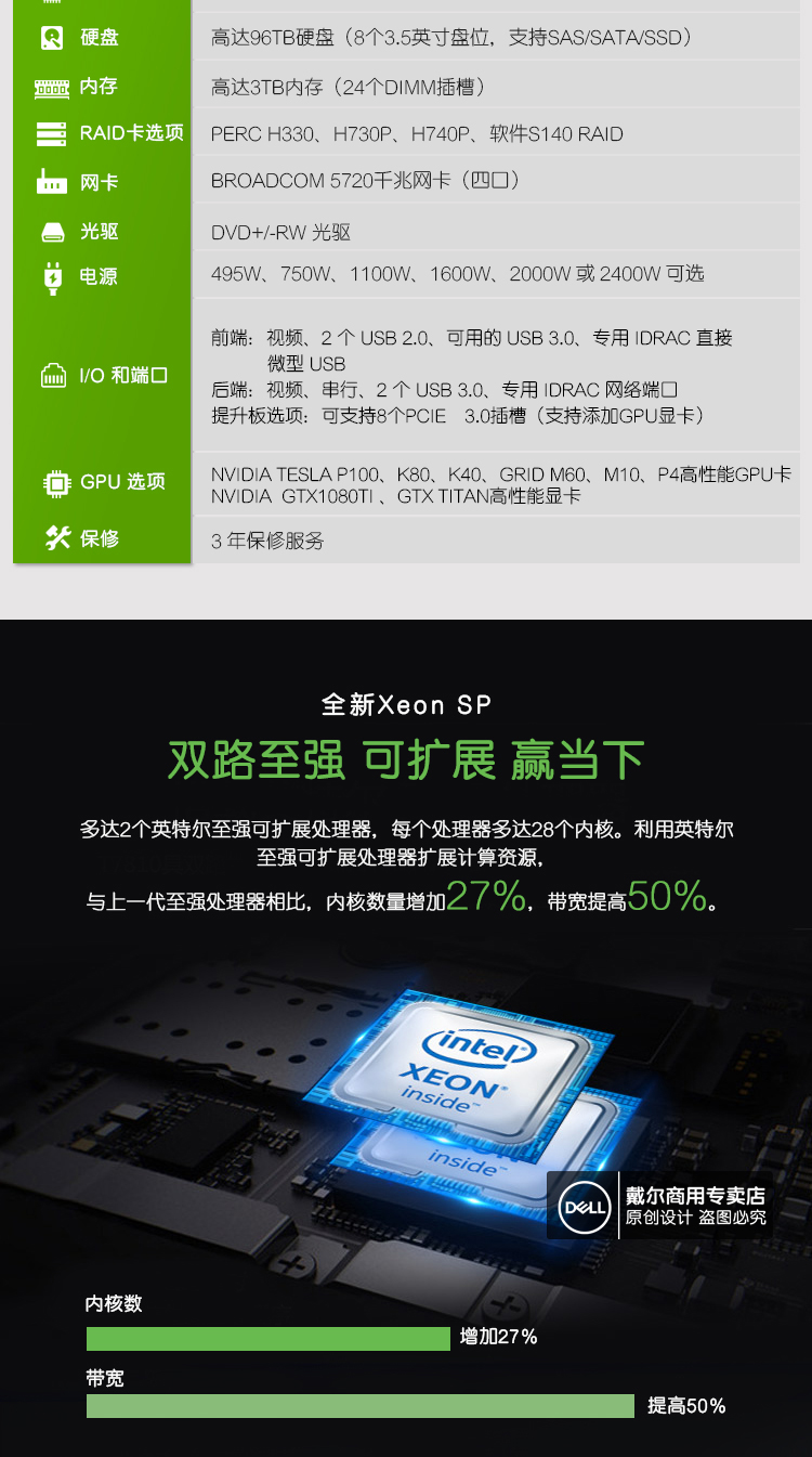 Dell/戴尔 PowerEdge T640 графика Двойной дорожный сервер
