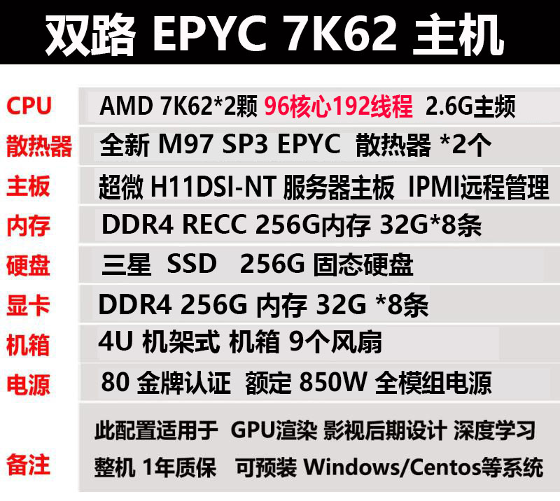 AMD EPYC Double Road 7K62/9654 Рейнджерс моделирование боевых вычислений Host Host 128 Auclear 256 Line 128