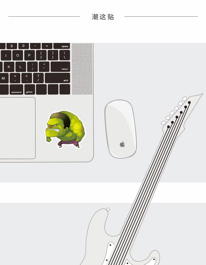 Светоотражательный чемодан, наклейка, ноутбук, скейтборд, гитара, Марвел, Халк