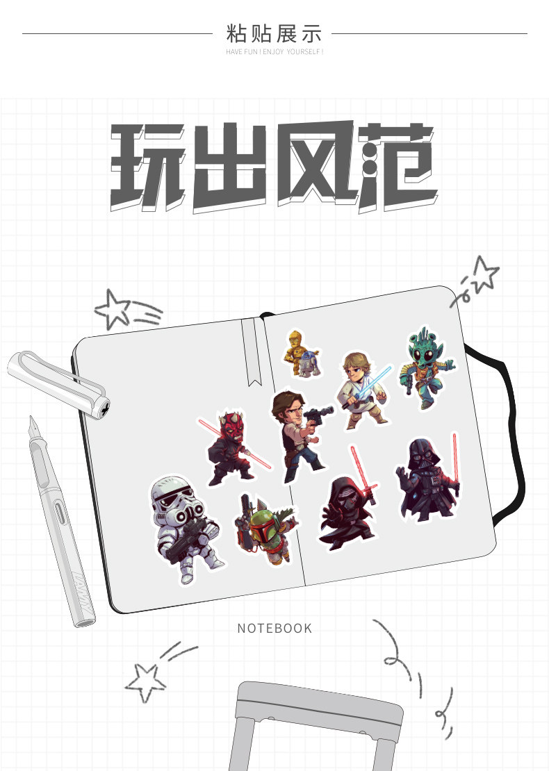 Мультяшный чемодан, водонепроницаемая наклейка, ноутбук, гитара, водонепроницаемые наклейки, звездные войны