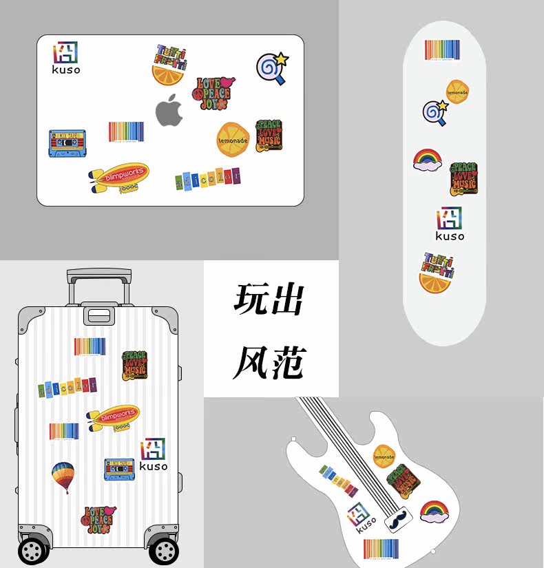 Мультяшный воздушный шар, ноутбук, наклейка, чемодан, гитара, мобильный телефон, водонепроницаемые наклейки