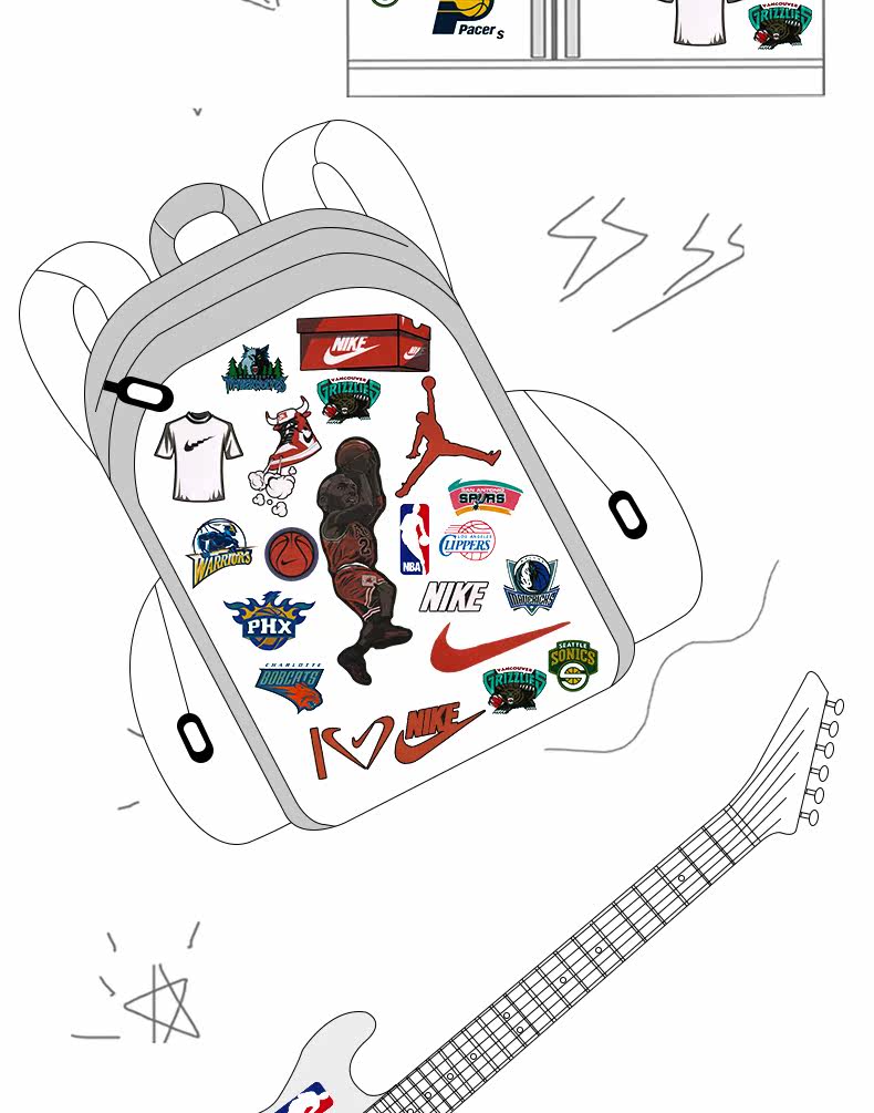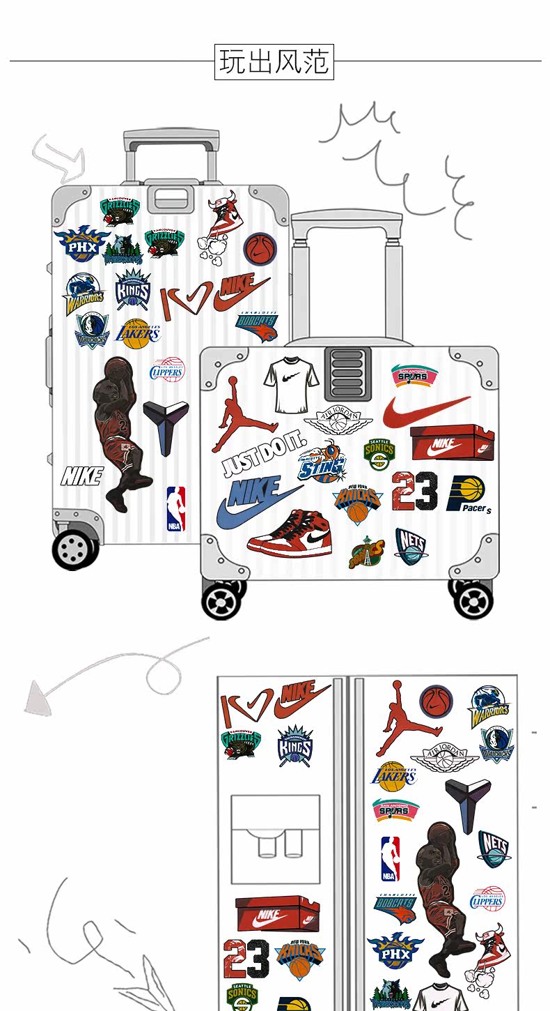 Баскетбольный чемодан, гитара, скейтборд, ноутбук, водонепроницаемая наклейка, наклейки
