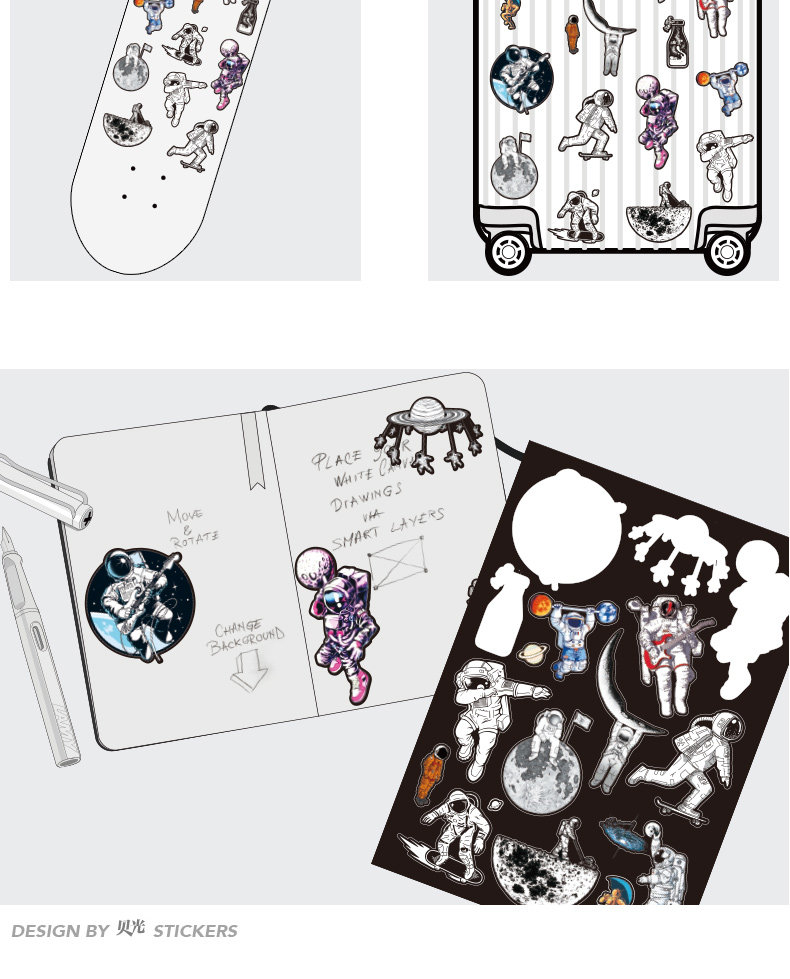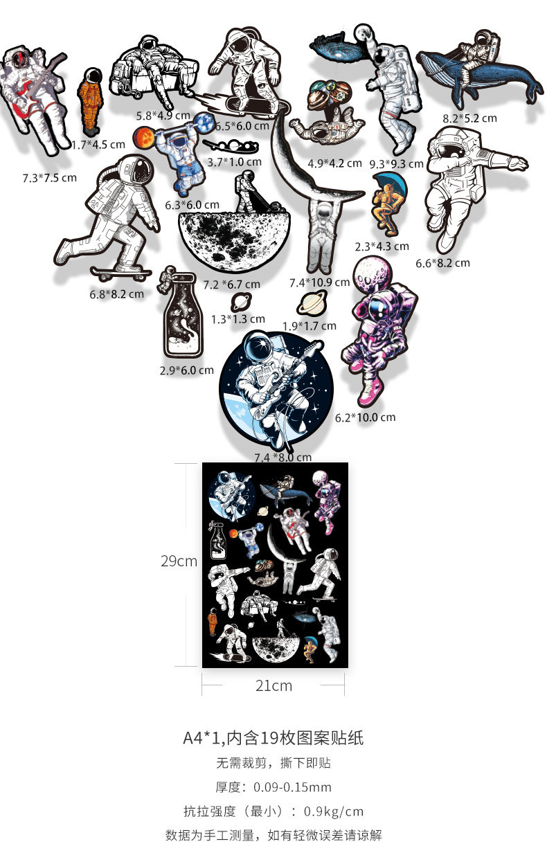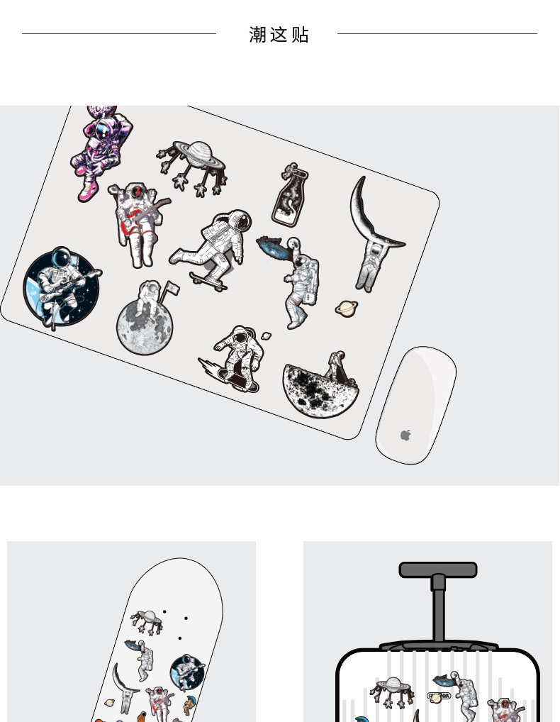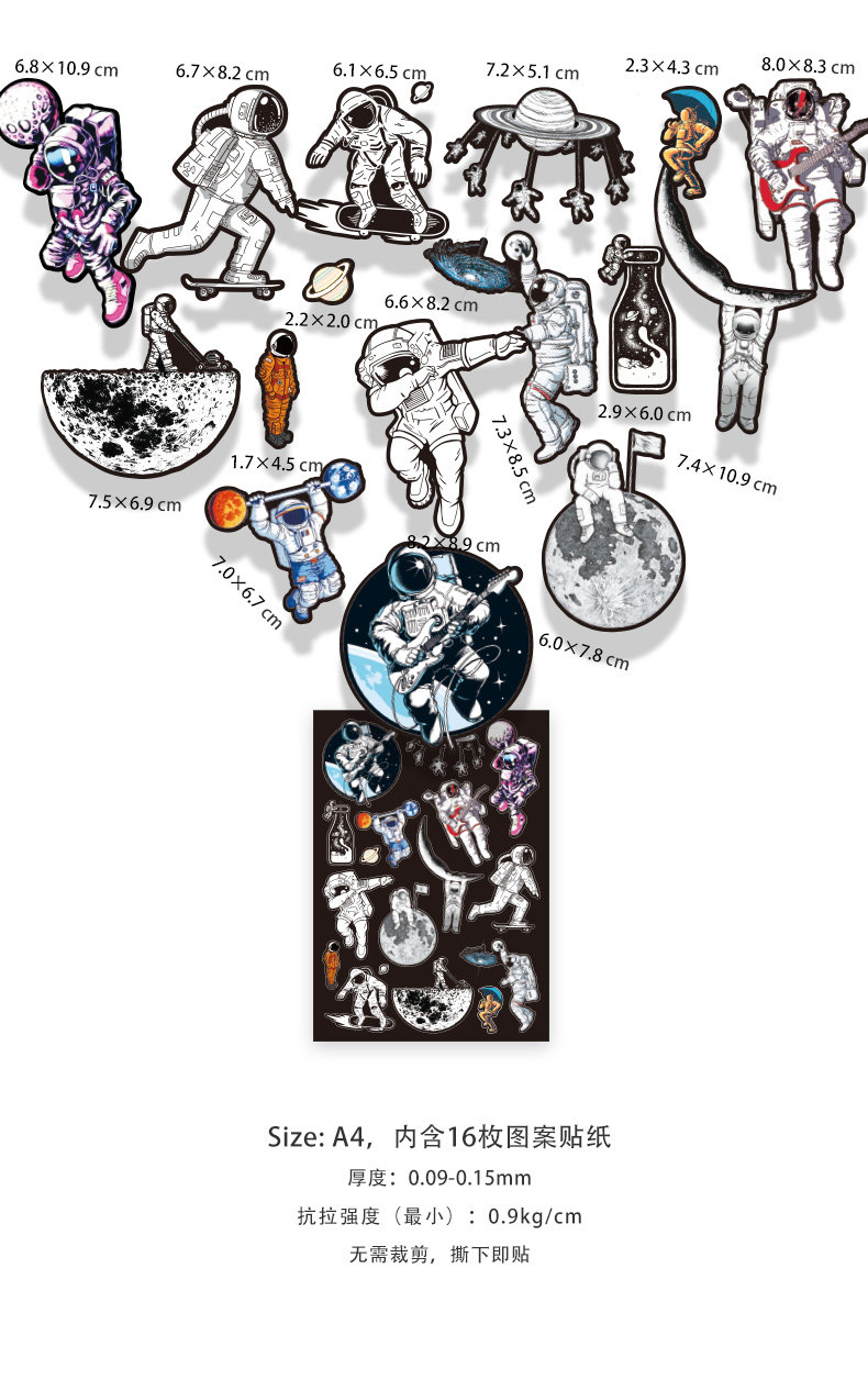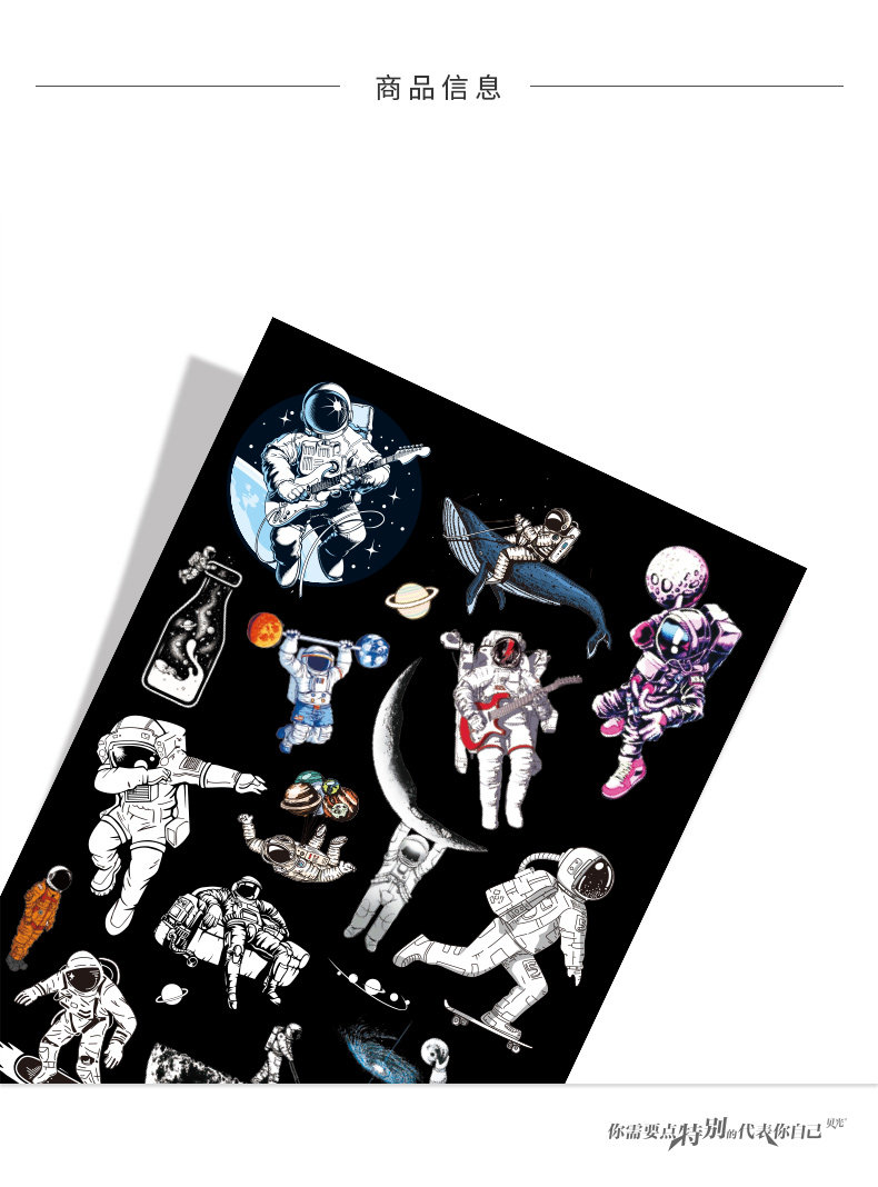 Мультяшный милый космический аэрокосмический космонавт, наклейки, кисть, ноутбук, скейтборд, чемодан, светоотражательная водонепроницаемая коробка