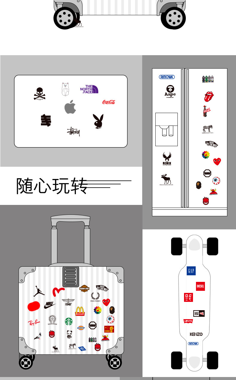 Светоотражательный маленький скейтборд, чемодан, чехол для телефона, ноутбук, гитара, световая панель, наклейки, с печатью вашего логотипа