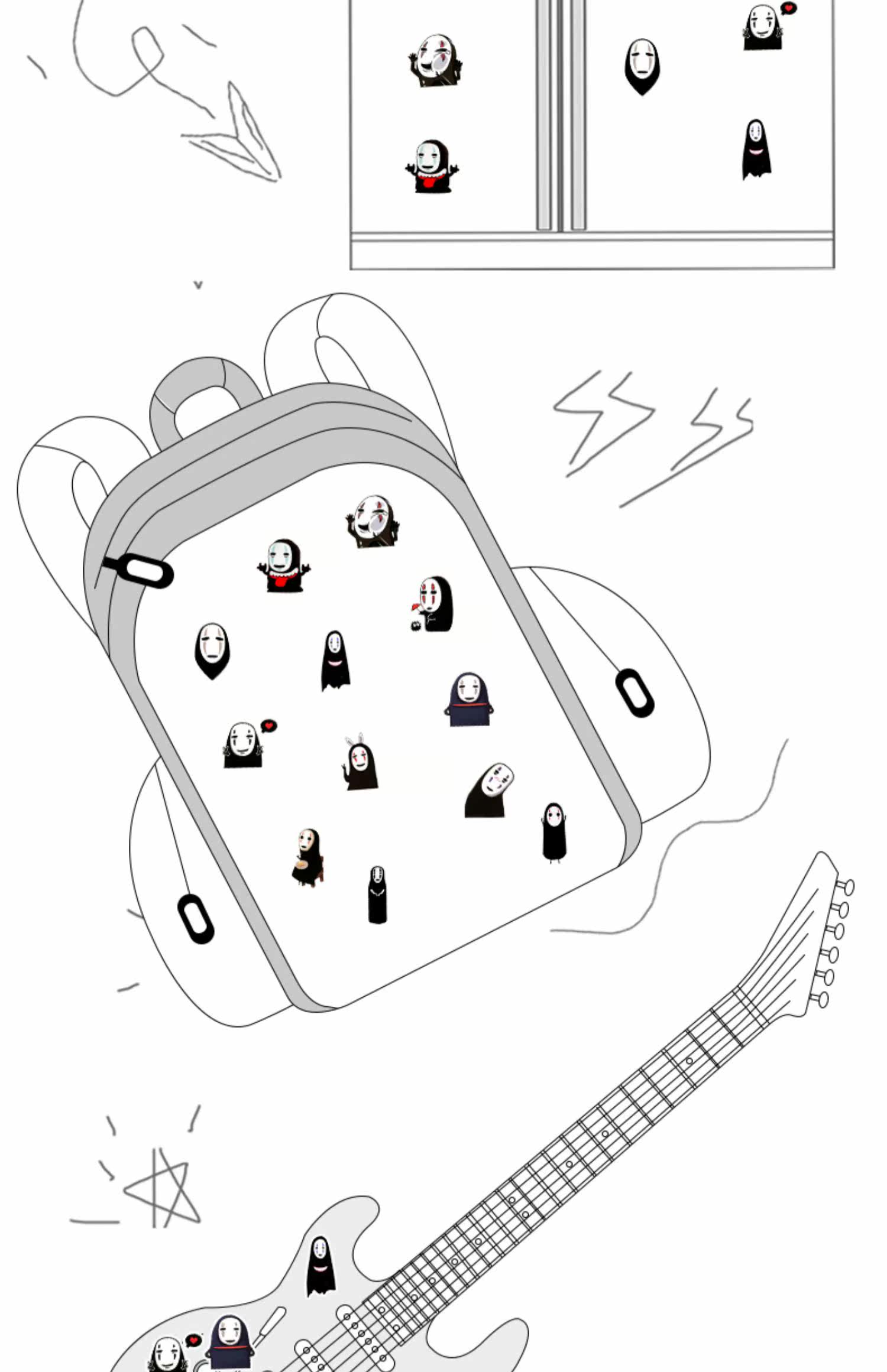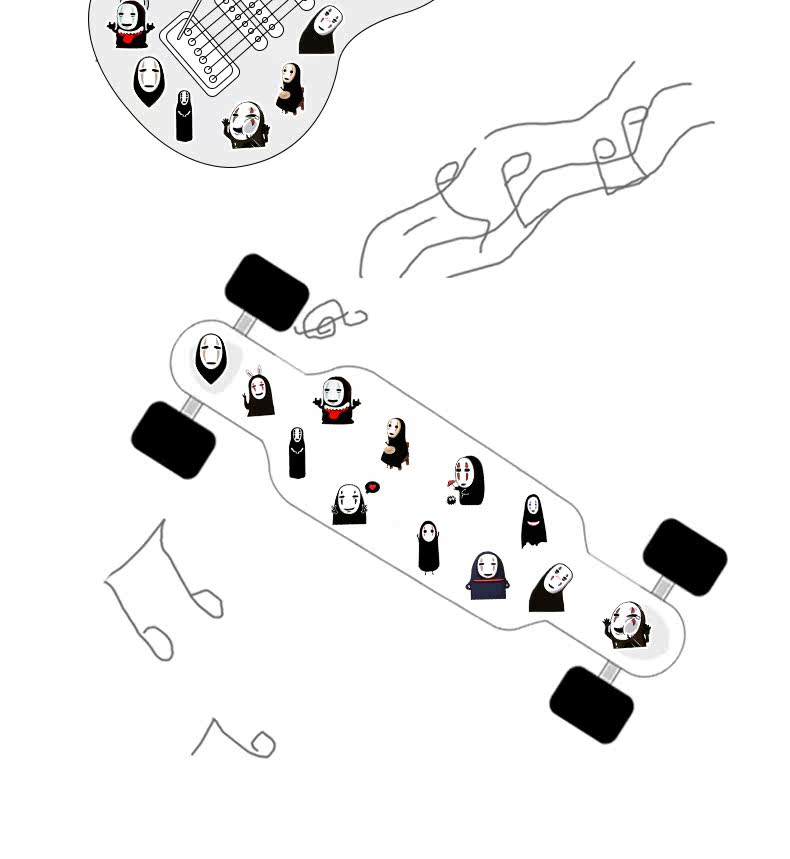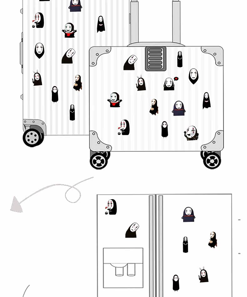 Мультяшный чемодан, наклейка, коробка, ноутбук, гитара, наклейки
