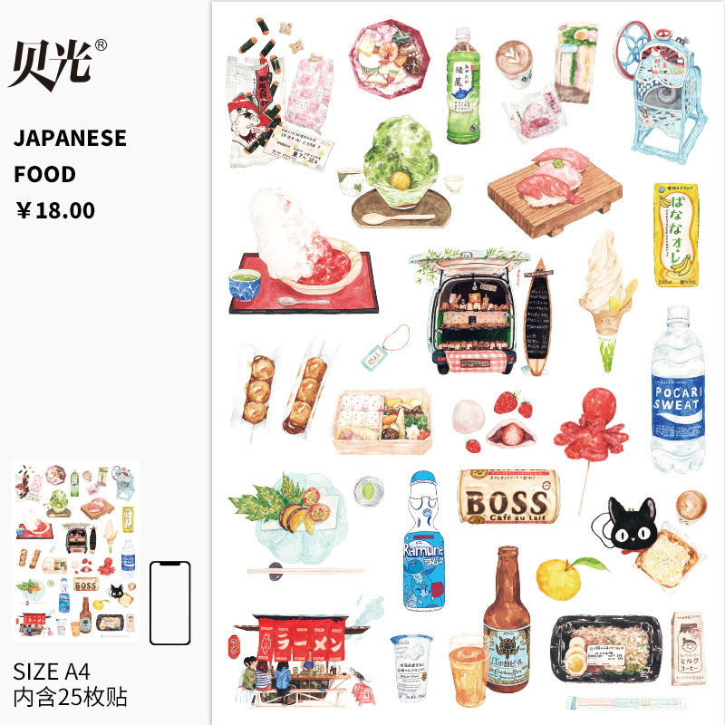 Мультяшный японский ноутбук, чемодан, наклейка, гитара, водонепроницаемый ящик, деликатесы
