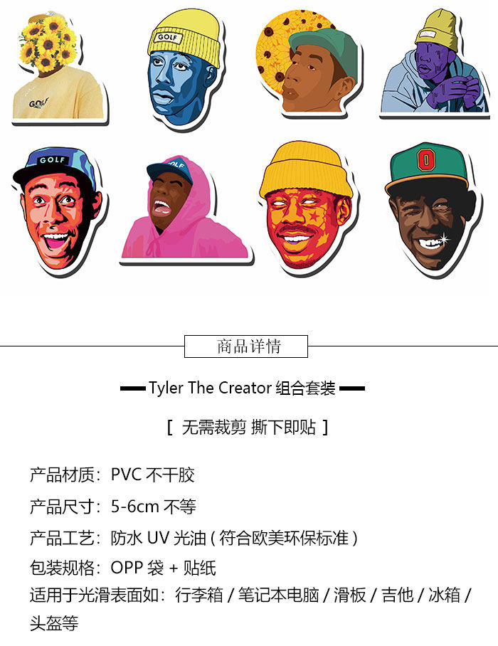 50 Рэппер Тайлер Творчащий багаж гитарный шлем шлем о шлем с водонепроницаемыми граффити наклеек