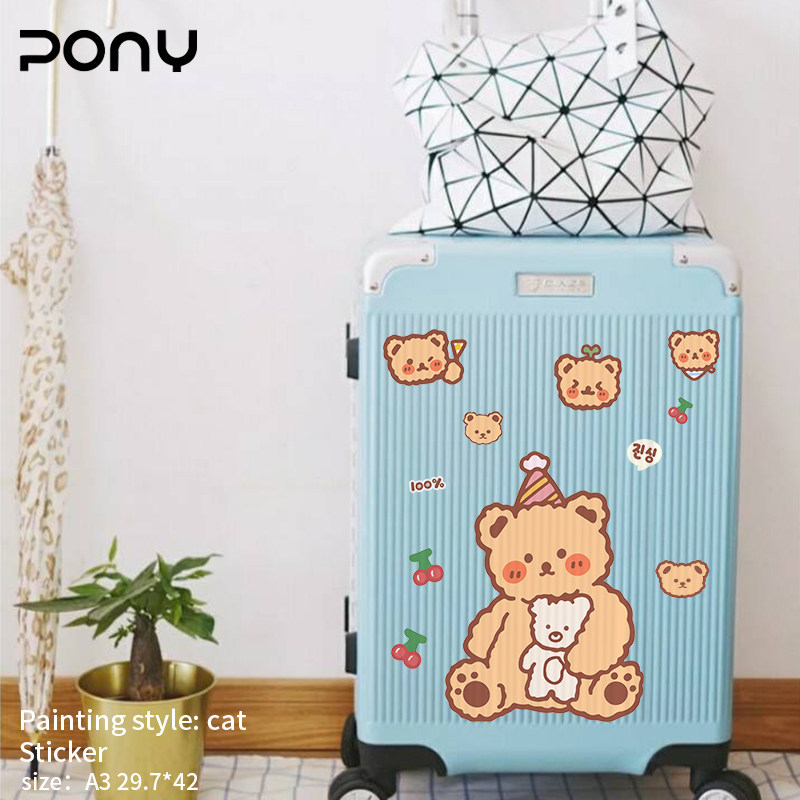 Мультяшный милый чемодан, наклейка, настенные наклейки, с медвежатами