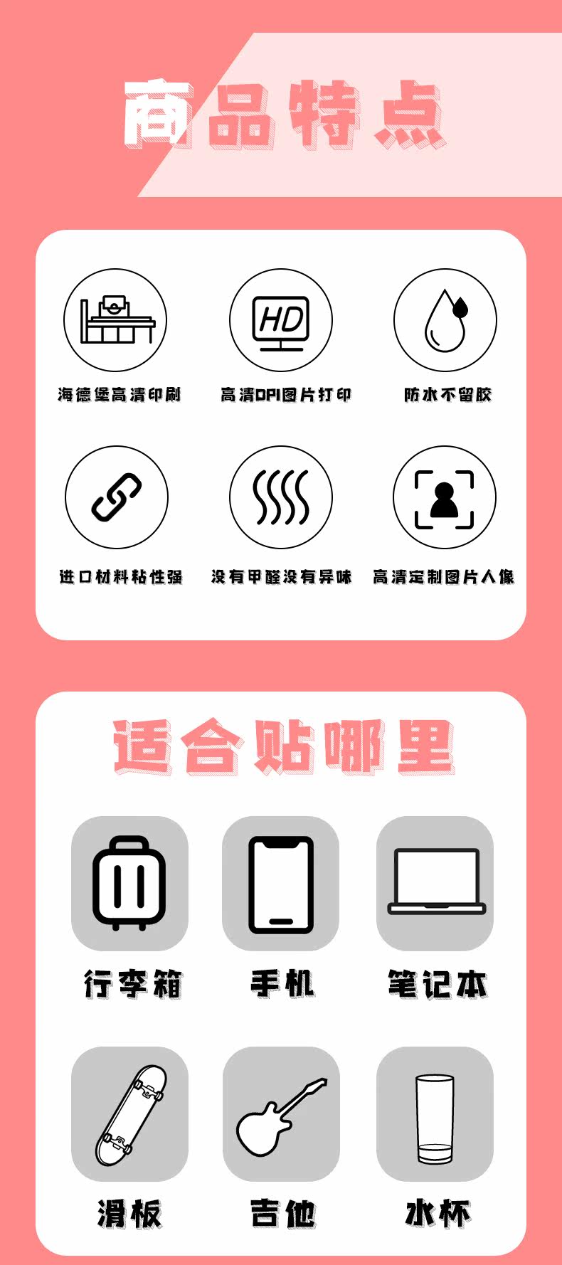 Светоотражательный ретро чемодан, водонепроницаемая наклейка, гитара, скейтборд, мобильный телефон, наклейки