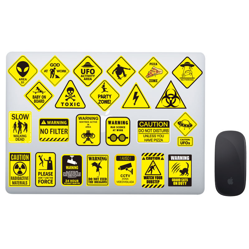 Желтый планшетный ноутбук, чемодан, скейтборд, шлем, водонепроницаемая наклейка