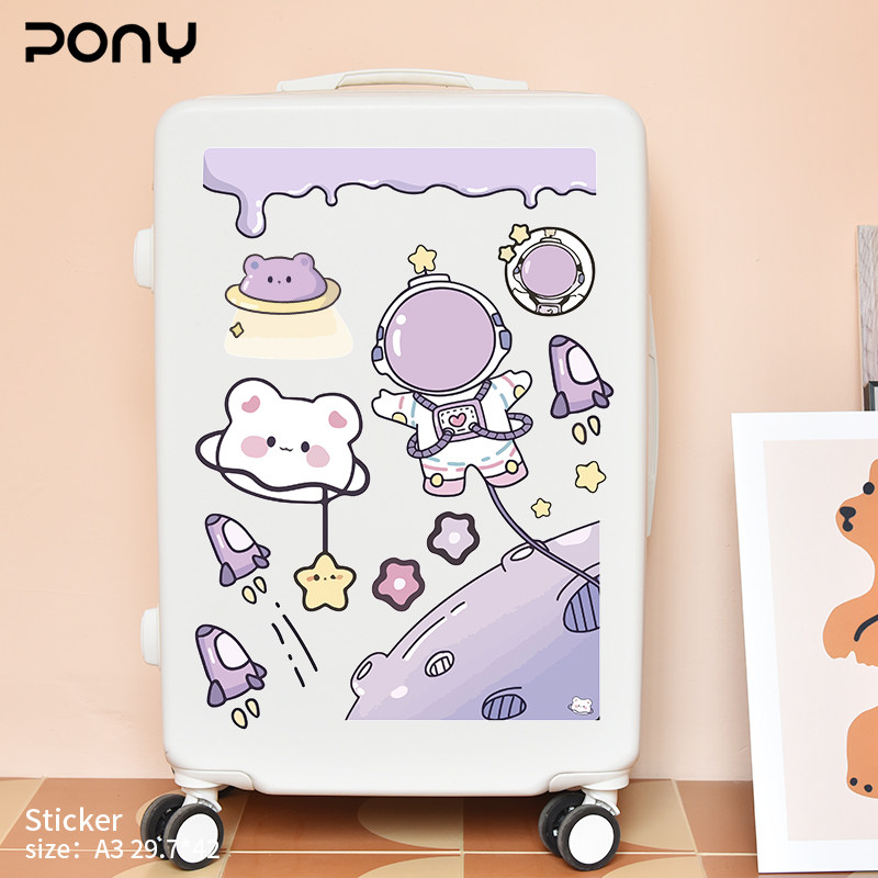 Мультяшный милый космонавт, чемодан, настенная наклейка для спальни, наклейки, DIY
