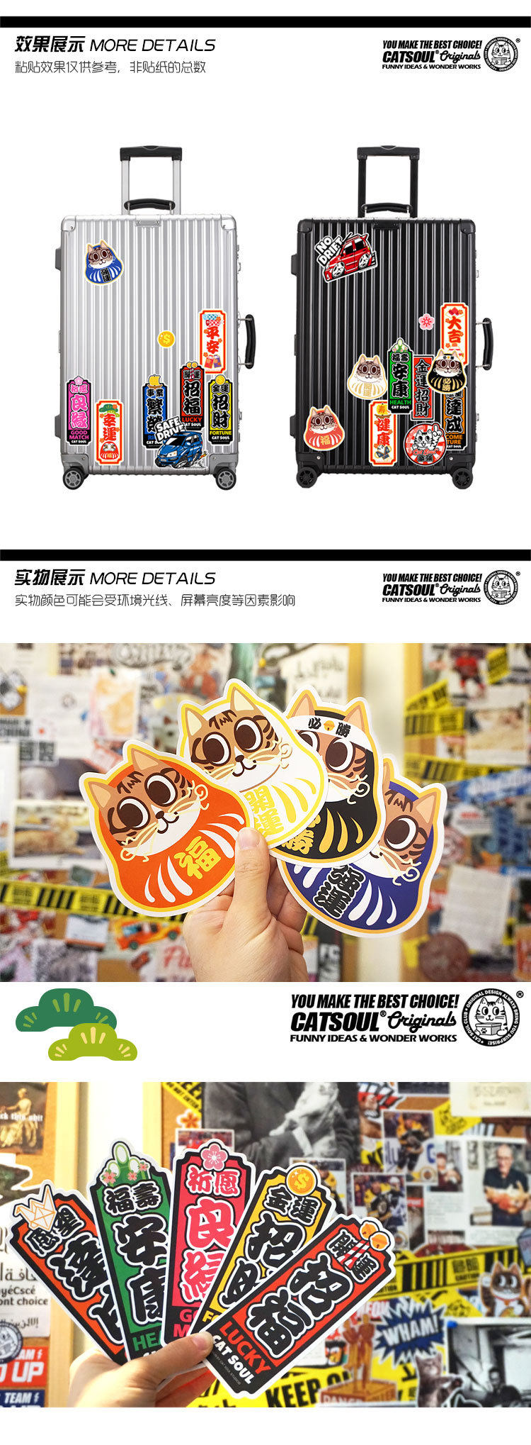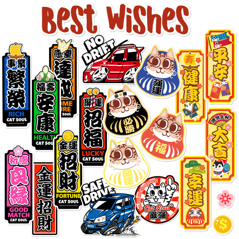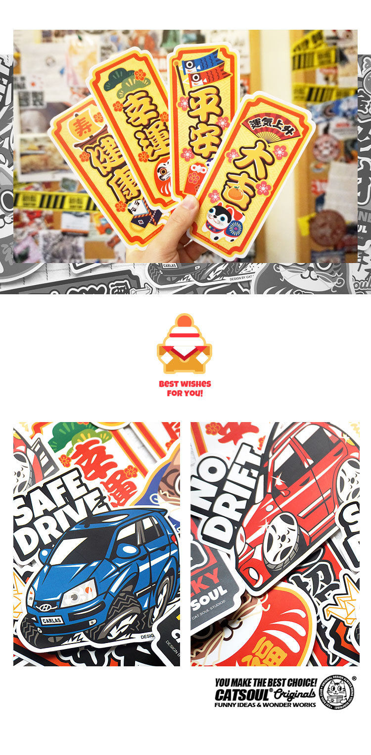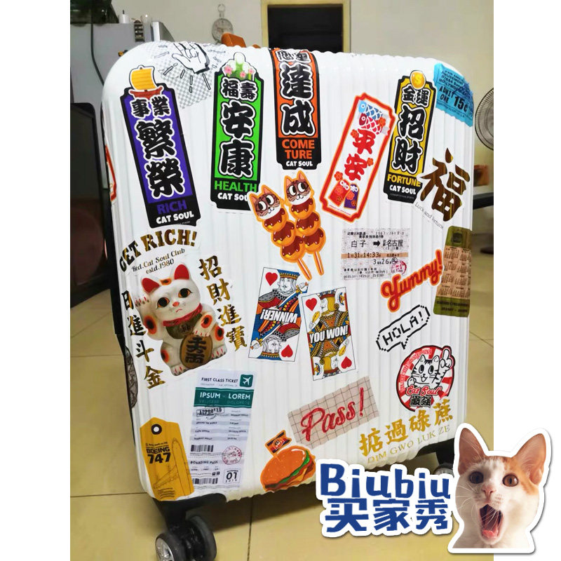 Светоотражательный оригинальный японский мультяшный чемодан, водонепроницаемая наклейка, ноутбук, скейтборд, шлем, ветрозащитный электромобиль, наклейки, на удачу, не оставляет клея