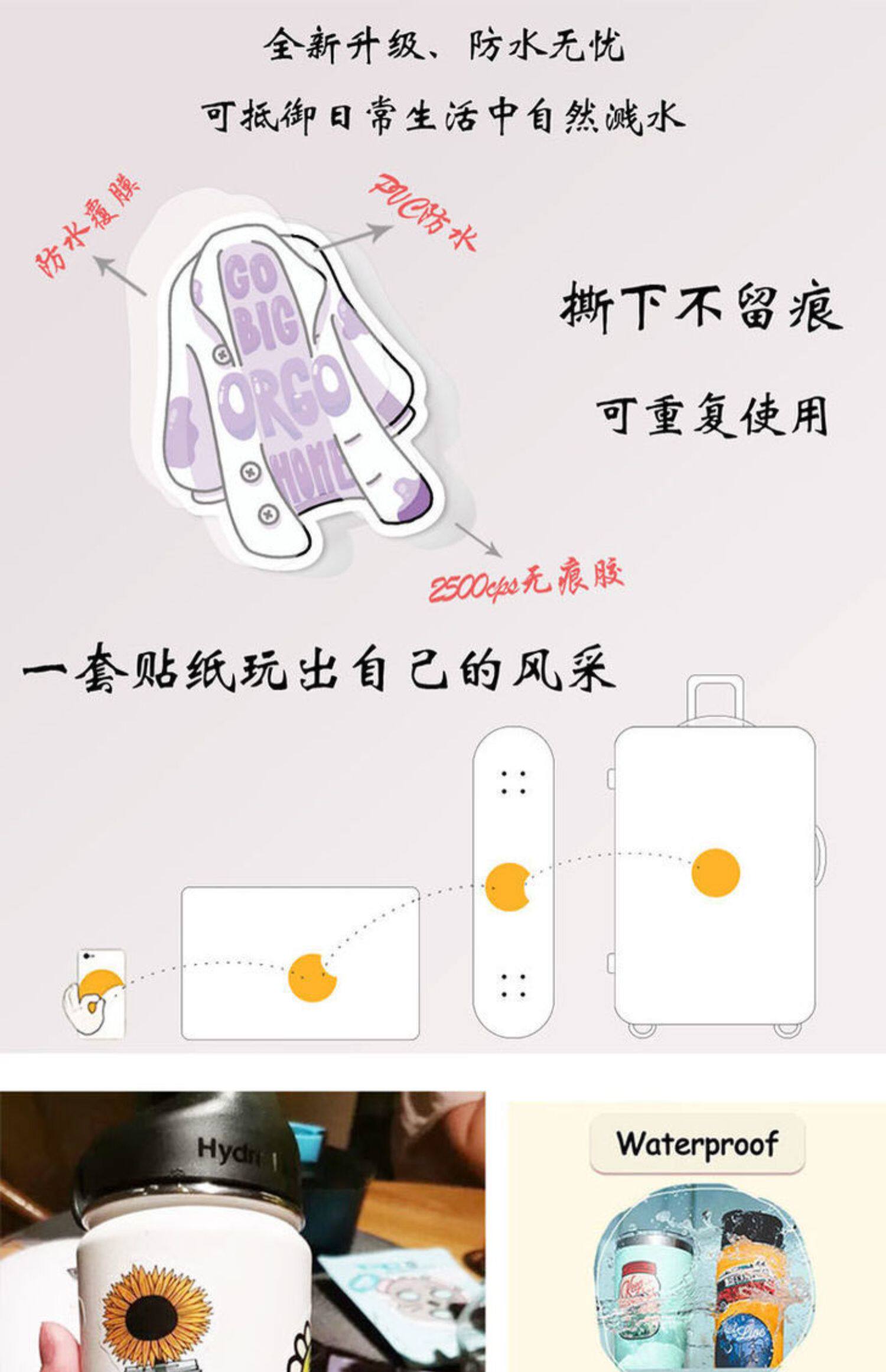 Чемодан, гитара, ноутбук, шлем, светоотражательная водонепроницаемая наклейка, граффити