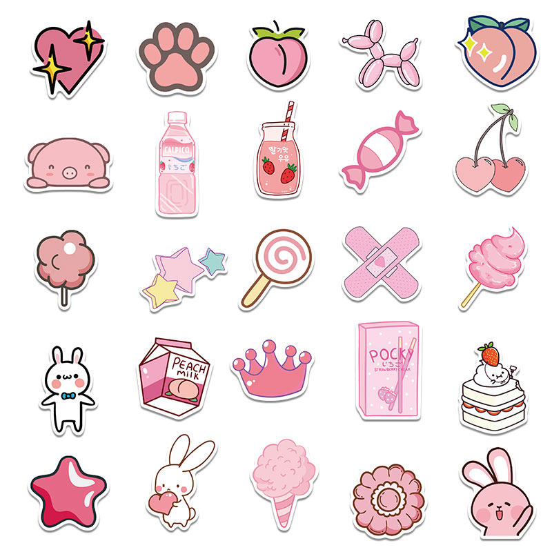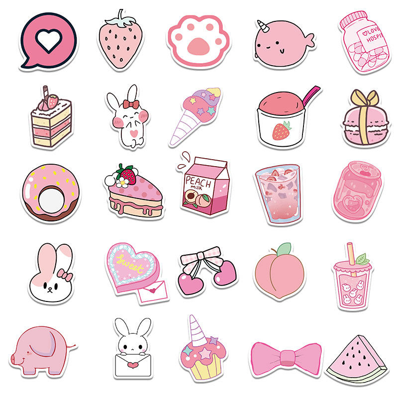 Мультяшные розовые наклейки, чемодан, гитара, светоотражательный водонепроницаемый скейтборд, граффити, не оставляет клея