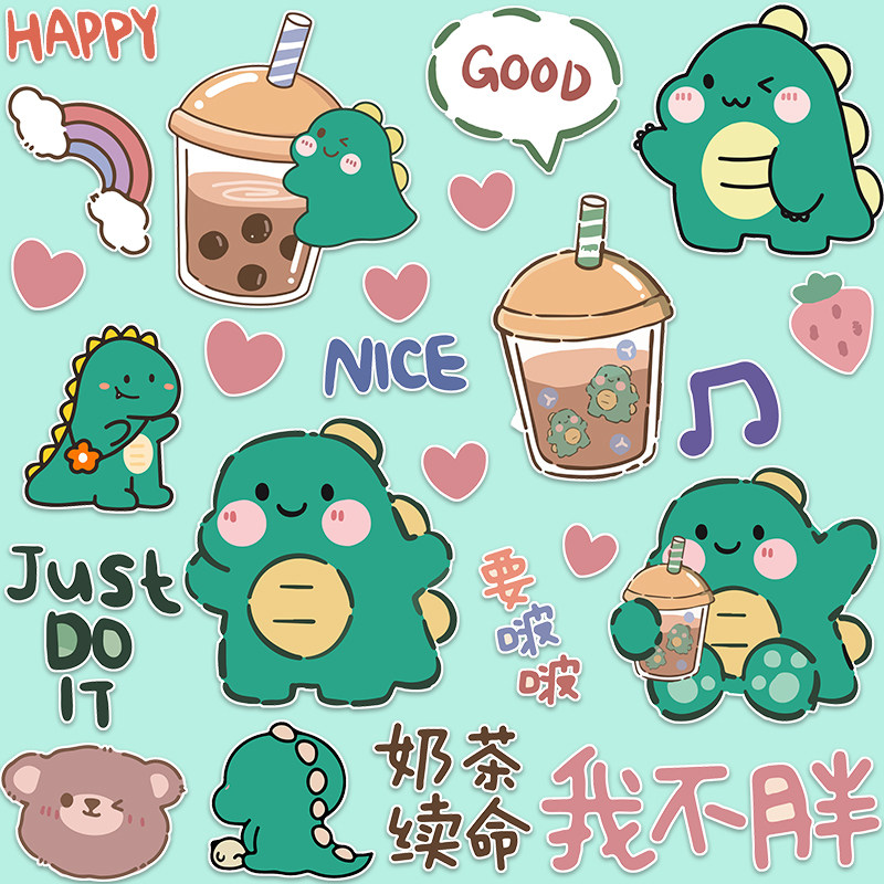 Мультяшный милый динозавр, чемодан, ноутбук, водонепроницаемые наклейки