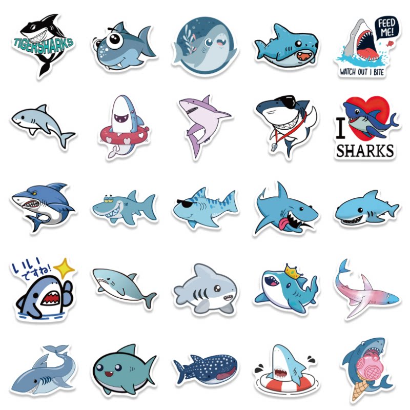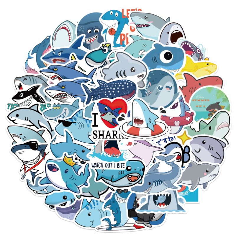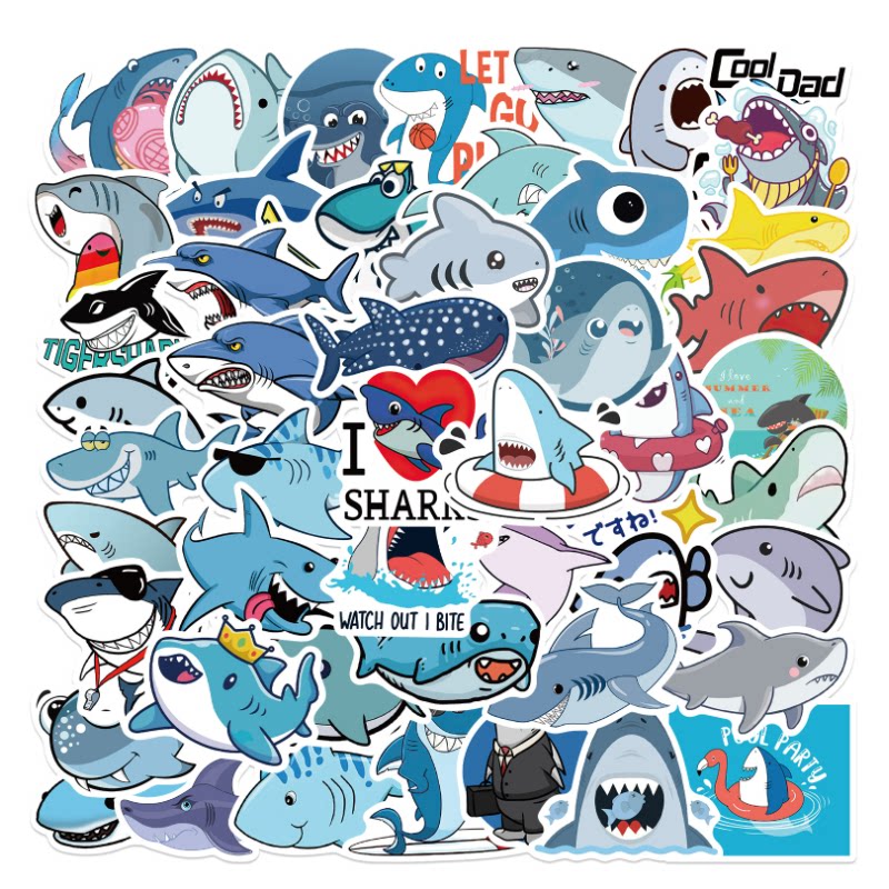 Мультяшная милая акула, чемодан, ноутбук, чехол для телефона, стакан, водонепроницаемая наклейка