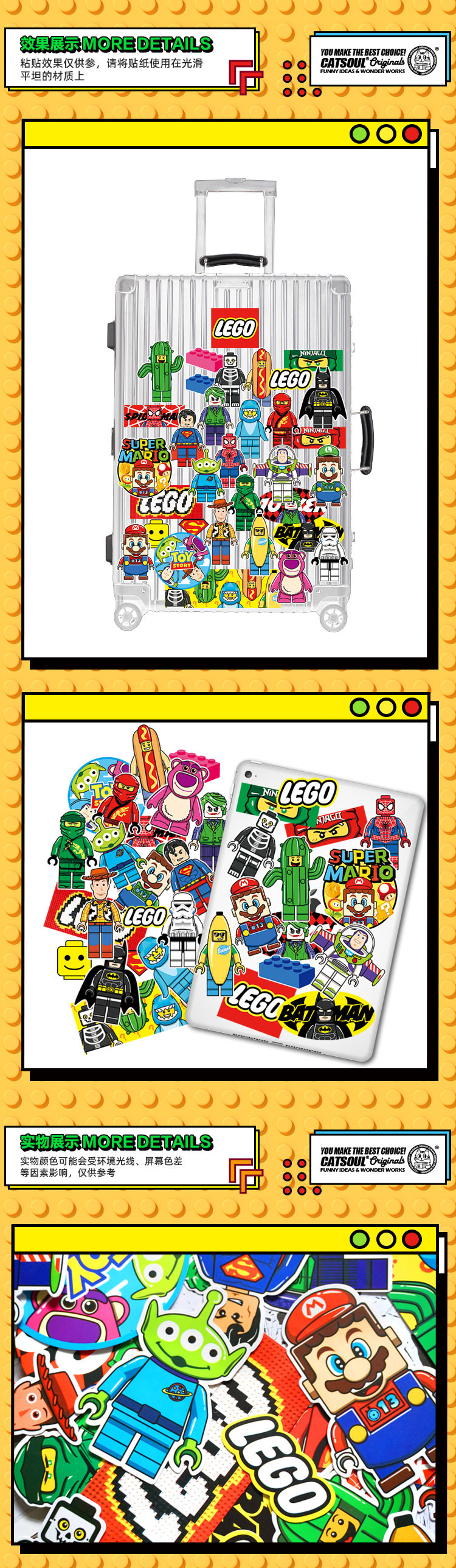 Мультяшный конструктор, деревянный человек, мобильный телефон, ноутбук, чемодан, электромобиль, шлем, гитара, водонепроницаемые наклейки, граффити