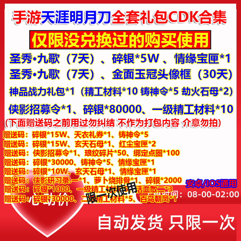 Мобильная игра Tianya Mingyue Knife Gift Package Cdk Полный набор выкупа дока изображения кадра для рекрутинга
