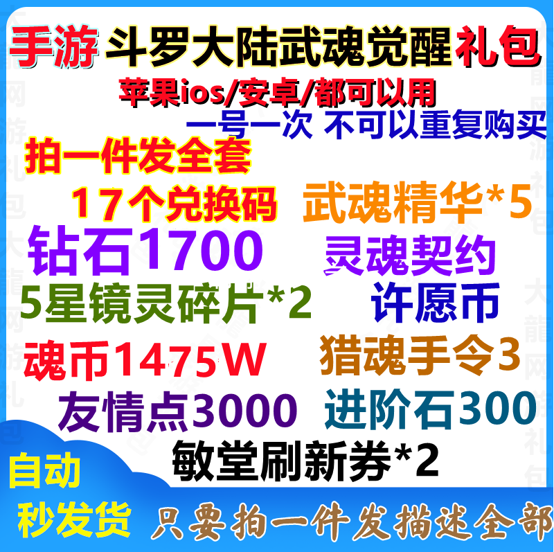 Diamond*100, Soul Stone*50, Wuhun Essence*5, Soul Soul Contract*1