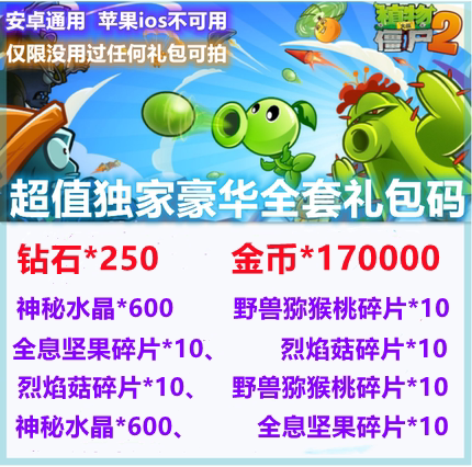 Android Mobile Game Plant vs. Zombie 2 Подарочный пакет CDK Code Full Set 250 Diamond/Orange Plant Fragments