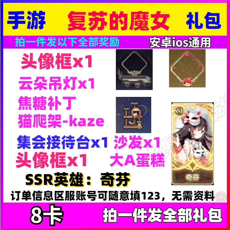 Мобильная игра восстановление ведьмы ведьма CDK Код выкупа Full Set 8 Card SSR QIFEN AVATAR BOX 2 SOFA
